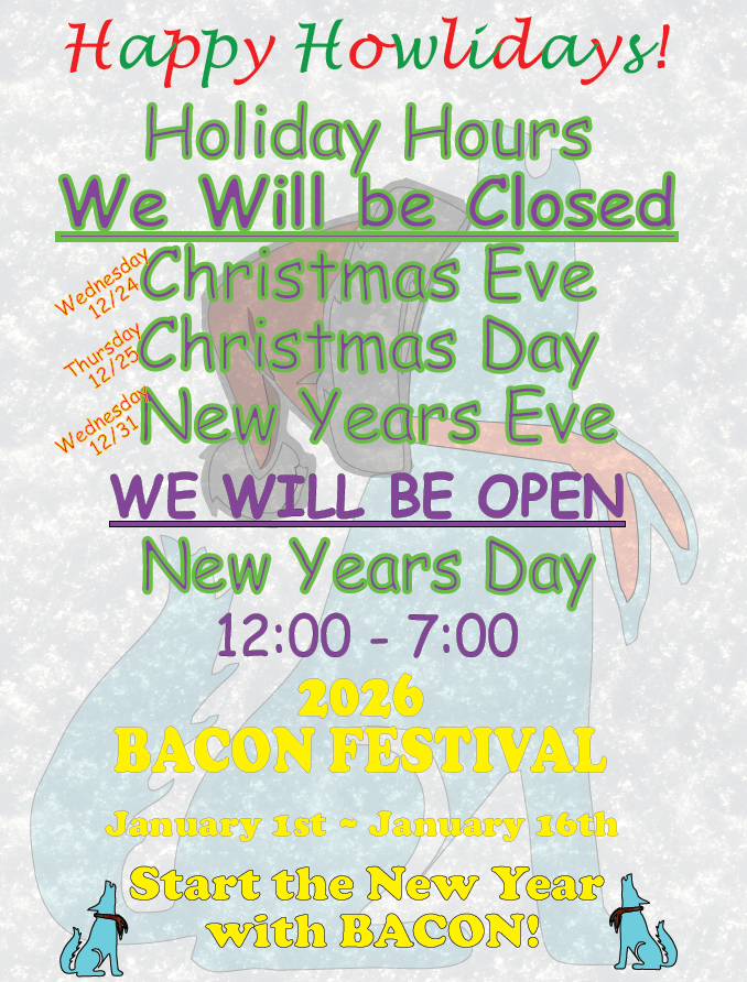 Online and phone orders accepted starting at 12:30 for 1:00 pickup
