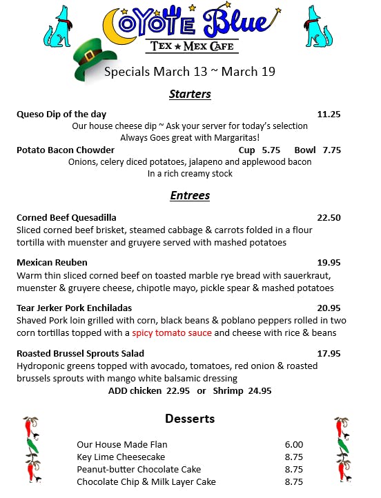 Our house cheese dip ~ Ask your server for today’s selection Always Goes great with Margaritas!